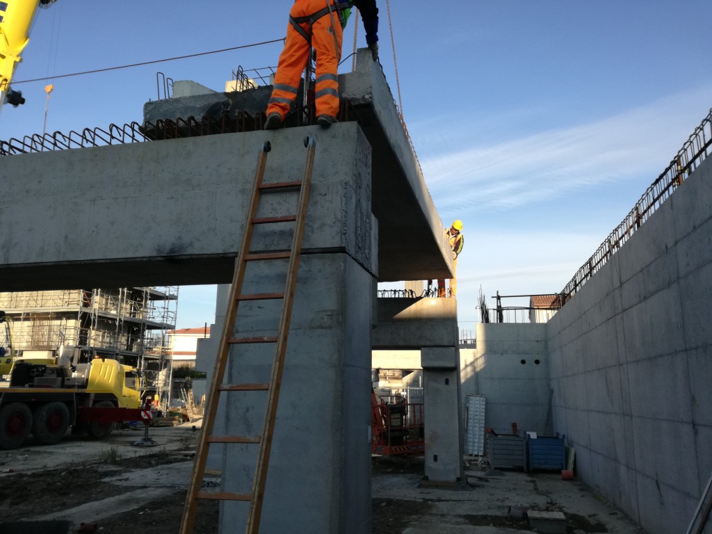 Il giorno 10 Marzo 2017 sono state varate le travi prefabbricate in c.a.p. di tipo PAC MID per la costruzione dell’impalcato carrabile di 1° Cat. necessarie per la costruzione di un nuovo Conad a Morciano di Romagna (RN).